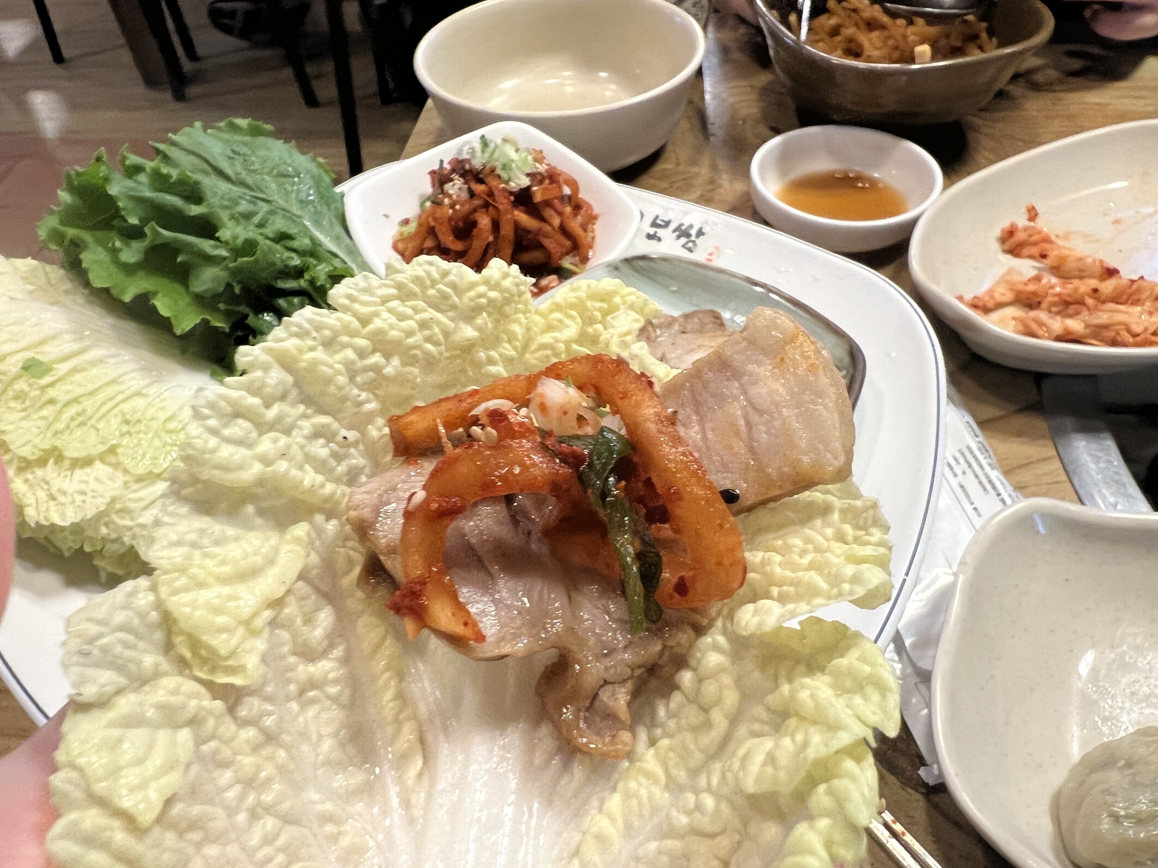정말 맛있었어요 고기가 촉촉하고 따뜻하고 배추랑 무김치랑 싸 먹었을 때의 환상