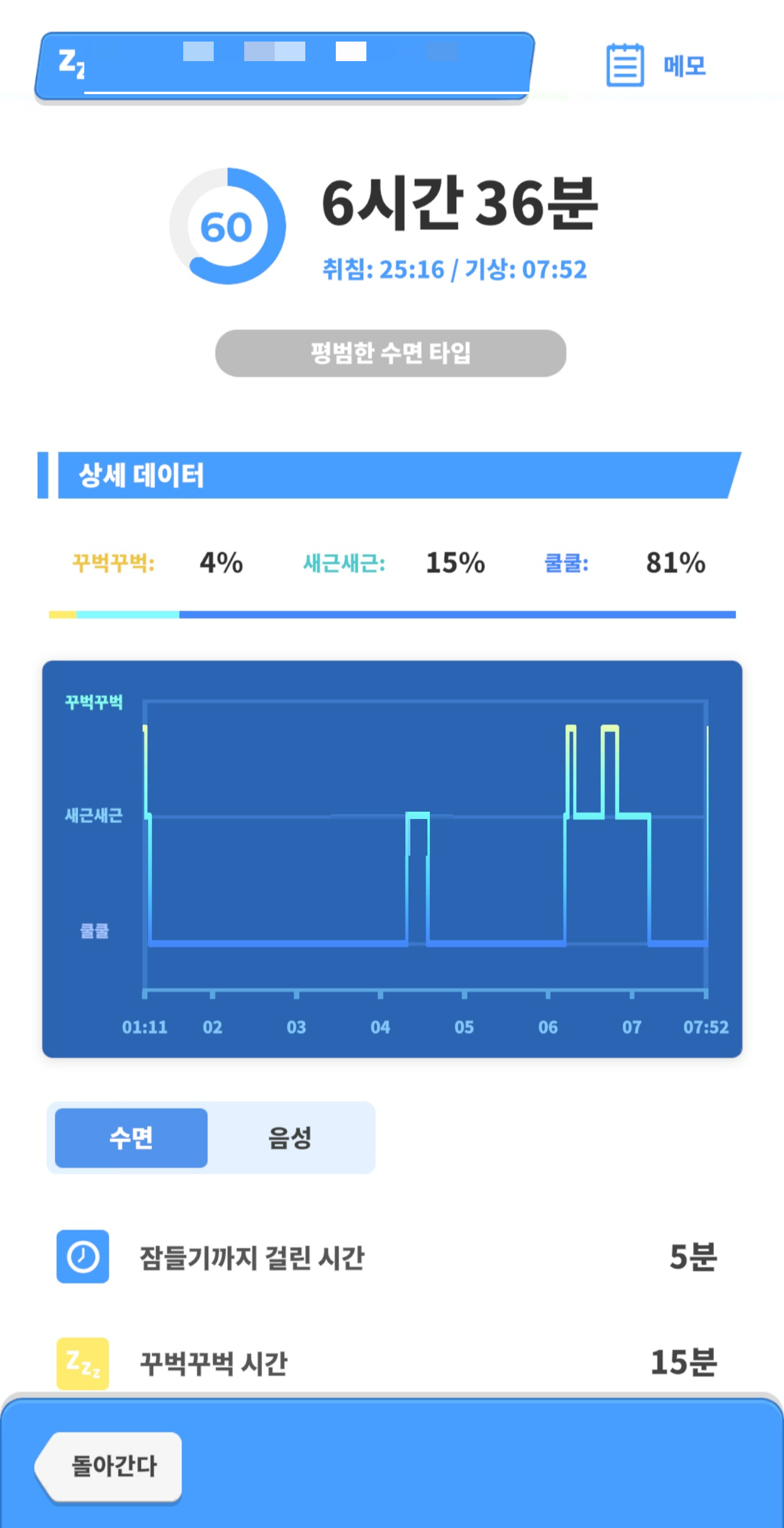 - 수면 타입 분석: 얕은 잠, 깊은 잠, 뒤척임 등의 데이터를 기반으로 세 가지 수면 타입을 분류해 줍니다.