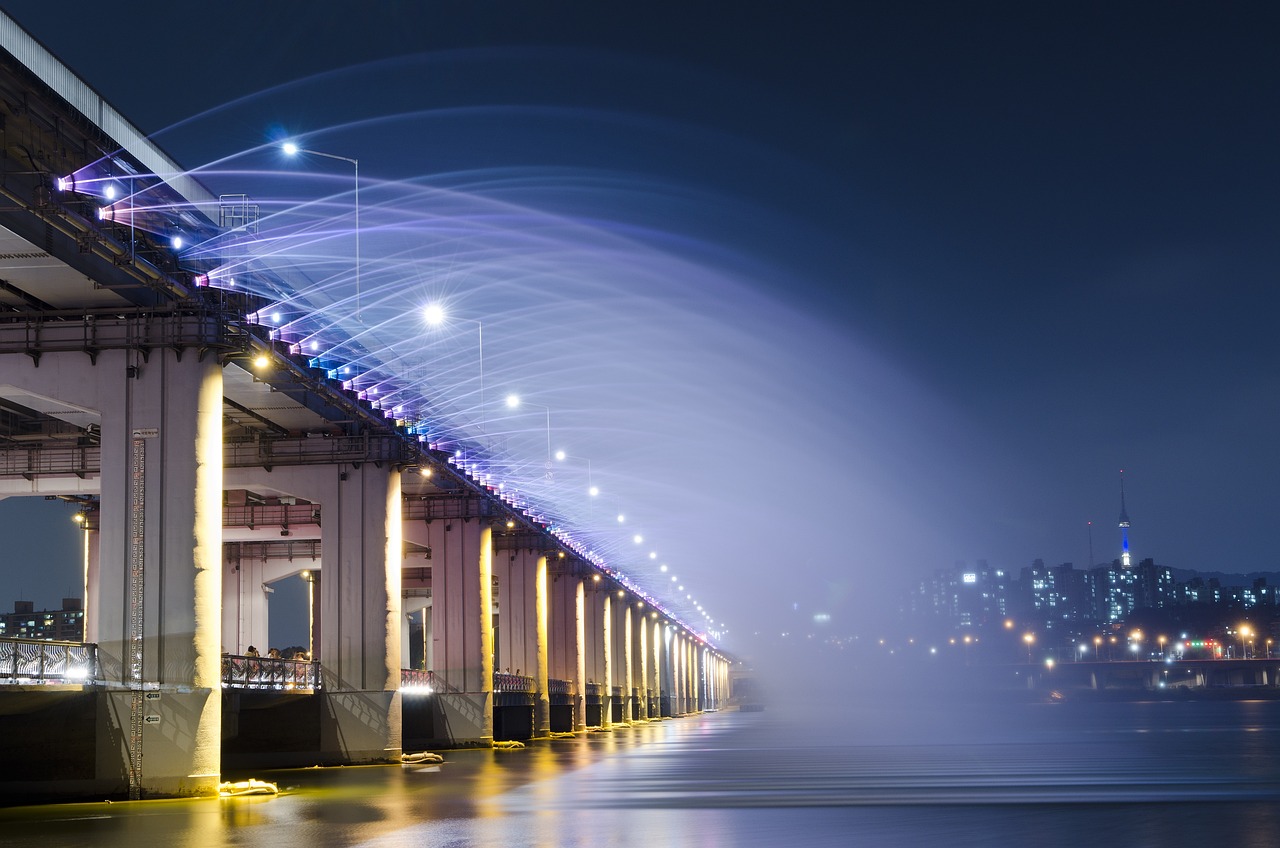 반포대교 – 세계에서 가장 긴 교량 분수인 ‘달빛무지개분수’가 유명