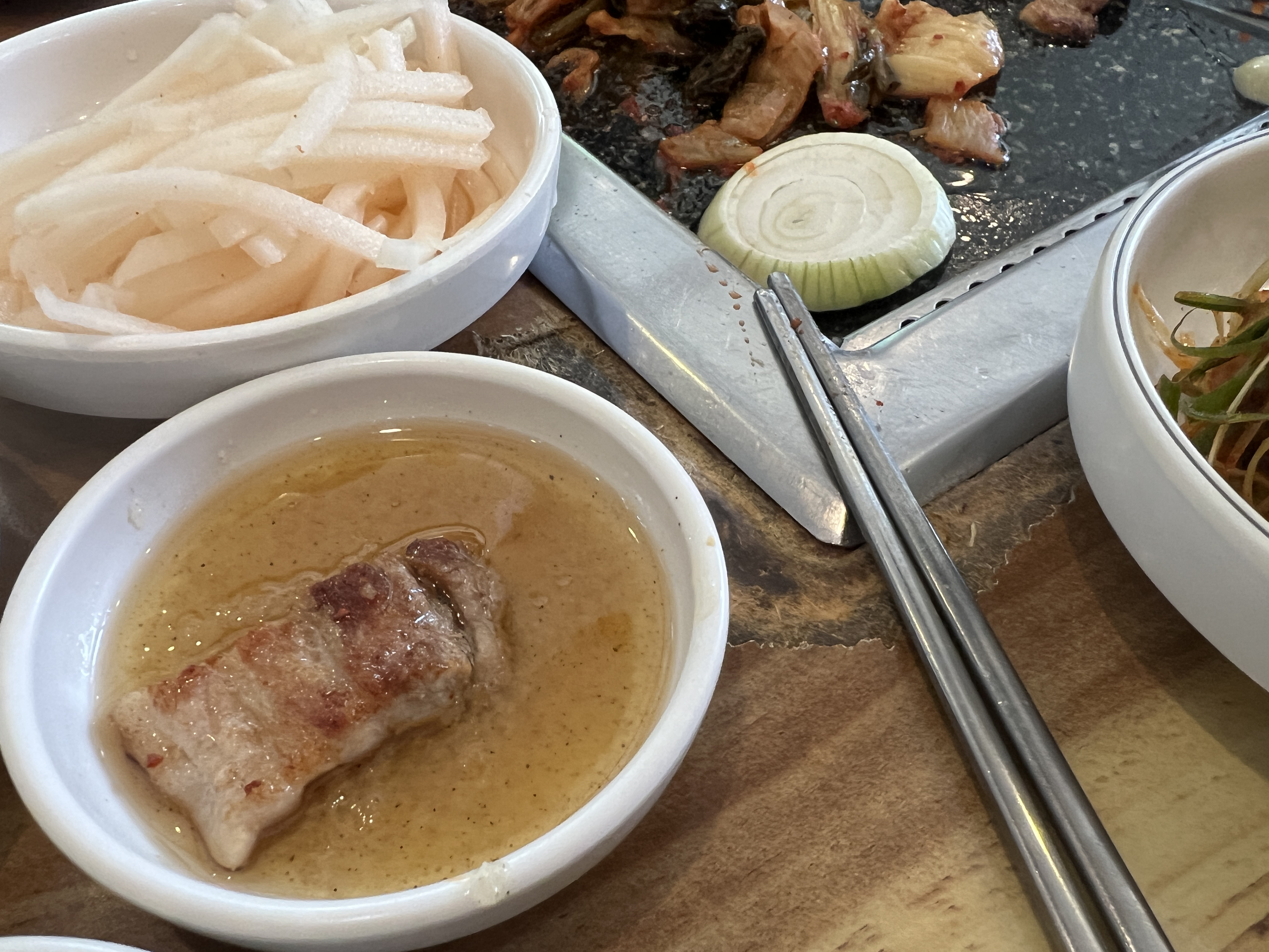 특히 불맛이 강하지 않아 삼겹살 본연의 고소함이 잘 느껴졌고, 고기 향이 전혀 느끼하지 않았습니다.
